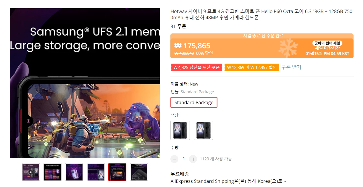 사실 호기심 반, 블로그 리뷰 욕심 반으로 이미 장바구니에 넣어놨던 러기드폰이 있는데요. 평소 350불 정도에 판매되는 제품인데 이번 굿바이 윈터세일 이벤트 기간 동안 140불 정도에 판매를 하고 있습니다. 여기에 밑에 소개할 추가 할인쿠폰을 적용하면 130불 정도에 구입할 수 있을 듯 합니다. 물론 이 가격이 적정 가격이겠지만 말이죠.