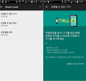 갤럭시노트4 Smart Lock 썸네일형 리스트형 갤럭시노트4 숨겨진 기능 장소에 따라 잠금화면이 자동으로 풀리는 스마트 락(Smart Lock) 갤럭시노트4 숨겨진 기능 장소에 따라 잠금화면이 자동으로 풀리는 스마트 락(Smart Lock) 갤럭시노트4의 숨겨진 기능 하나를 발견했습니다. 잠금화면을 사용하는 분들이라면 무척 유용하게 사용할 수 있을 듯 해서 소개해볼까 합니다. 일반적으로 보안 때문에 패턴, 비밀번호, 지문인식 등을 활용해 잠금화면을 많이 이용하실텐데요. 보안을 위해 잠금화면이 꼭 필요하지만 필요가 없는 상황에서는 아무래도 매번 잠금화면을 풀어주는 상황이 꽤 불편합니다. 특히 사이즈가 큰 갤럭시노트4는 한 손으로 잠금화면을 풀다가 떨어트리는 경우도 종종 발생합니다. 그래서 상당히 좋은 기능 하나를 소개합니다. 바로 스마트락(Smart Lock) 기능입니다. 스마트락은 내가 설정한 장소 또는 갤럭시노트4와 연결된 신뢰할 수 있는 기기.. 더보기 이전 1 다음
